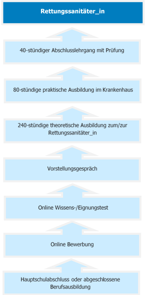 Die Ausbildung zur Rettungssanitäterin bzw. zum Rettungssanitäter dauert insgesamt 520 Stunden und gliedert sich in folgende Abschnitte: